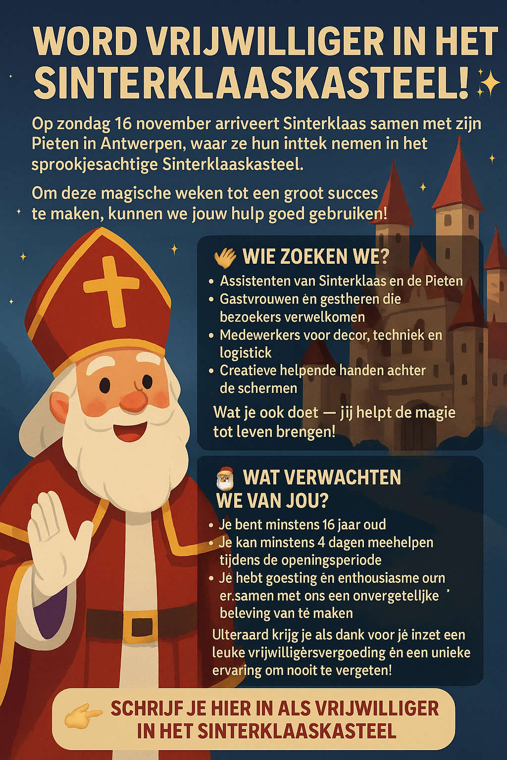đ Schrijf je hier in als vrijwilliger in het Sinterklaaskasteel